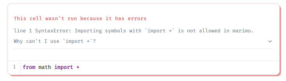 marimo raises this error you attempt to use import *.